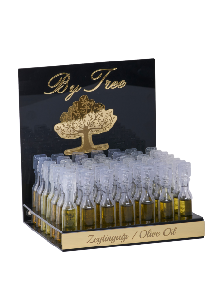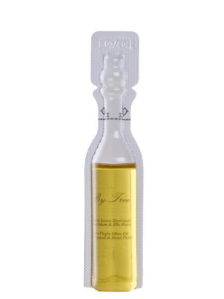 By Tree (10 ml) disposable olive oil. Natural extra virgin olive oil, which is obtained by cold pressing technique applied to olives that are harvested by hand, without damaging them and without touching the soil, is in single-use packaging. Monodose olive oil, which is easily broken and opened thanks to its special clip and has a controlled flow structure, is the number one choice of cafes, restaurants and hotels in terms of hygiene and practice. 1000 pieces of 10 ml disposable olive oil can be purchased in packages. Store in a cool and out of sunlight place.